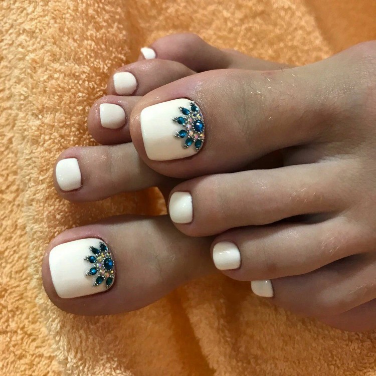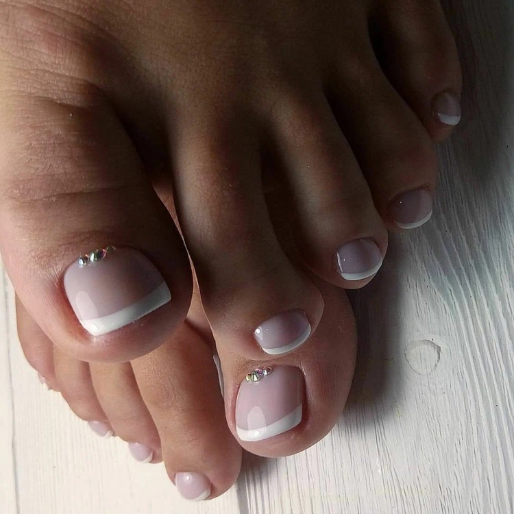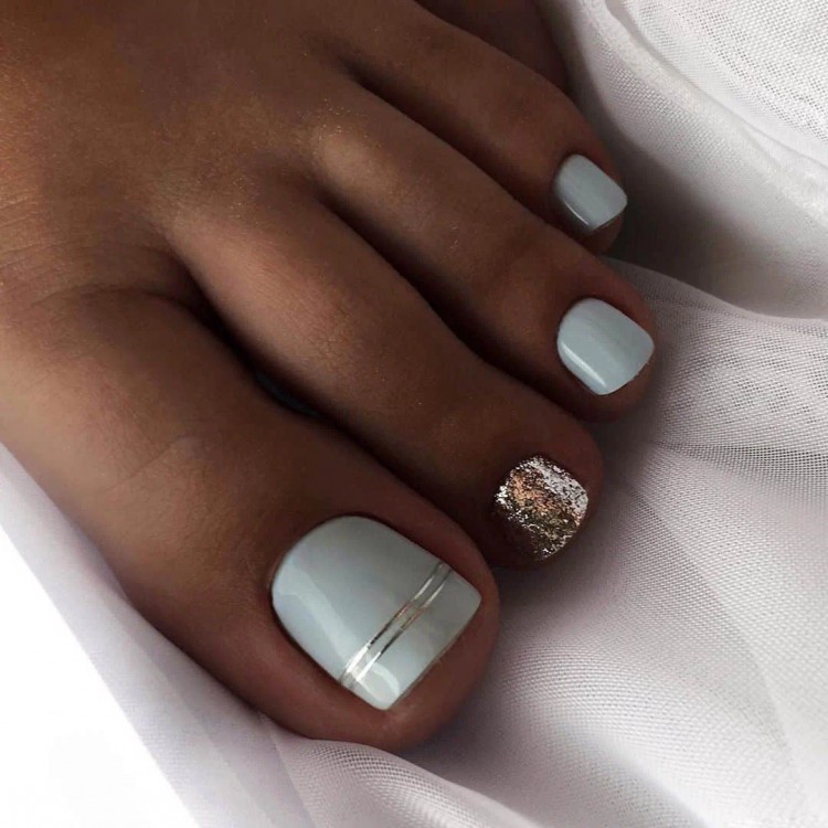 Різні відтінки білого в педикюрі чудово виглядають у поєднанні з мінімальним дизайном. До такої основи не варто додавати велику кількість аксесуарів, прикрас.
