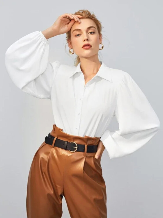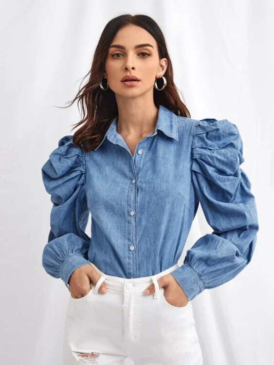 Ще один фаворит сезону, це сорочки з акцентними рукавами. Це можуть бути фасони з рукавами буфами, ліхтариками або моделі з рукавами єпископа. Особливо стильно такі моделі виглядають з коміром стійкою.