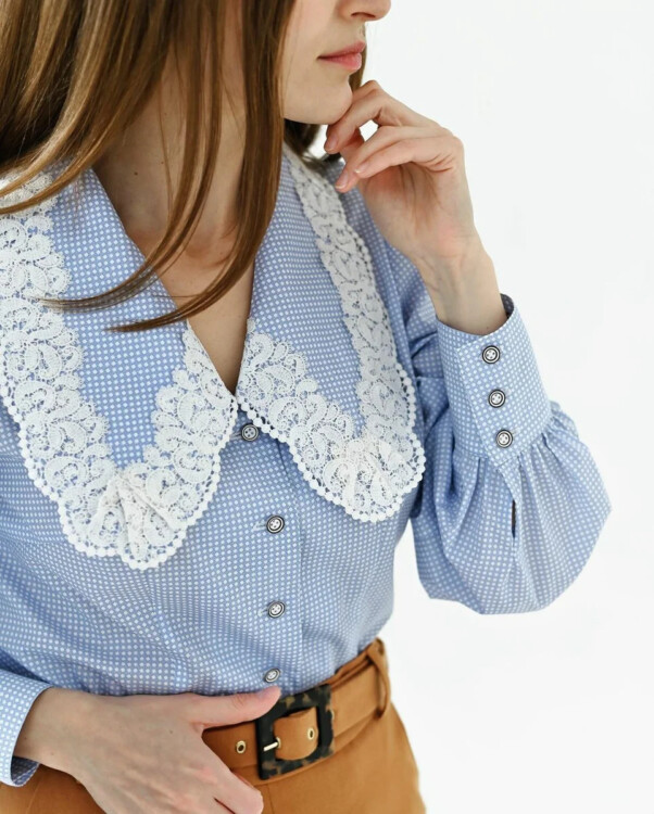 Ще одним новим віянням стали сорочки з великими ажурними ретро комірами, на яких може бути присутньою контрастна вишивка. Вони чудово поєднуватимуться з класичними, шкіряними або джинсовими, брюками і спідницями.