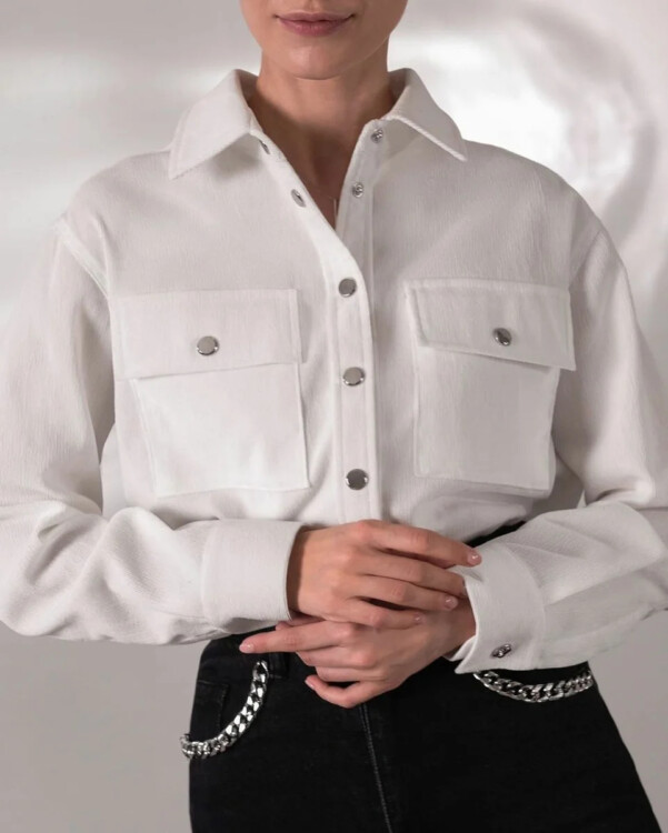 Сорочки з накладними кишенями стали ще одним хітом цього року, вони чудово поєднуються як з брюками так і зі спідницями. Їх можна носити заправляючи всередину штанів або спідниць або на випуск в багатошарових образах, наприклад, одягнувши поверх водолазки. Але вибираючи таку модель потрібно пам’ятати, що об’ємні кишені візуально додають об’єму в тих місцях де вони знаходяться.