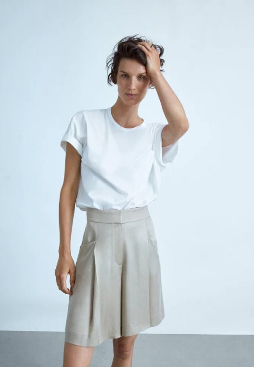 Лляні шорти-бермуди легко впишуться як в повсякденні, так і в ділові образи. У першому випадку можна носити їх з босоніжками на плоскому ходу і яскравим топом. У другому – з базовою футболкою або легкою блузкою, подовженим жилетом і витонченими Мюлями на підборах.
