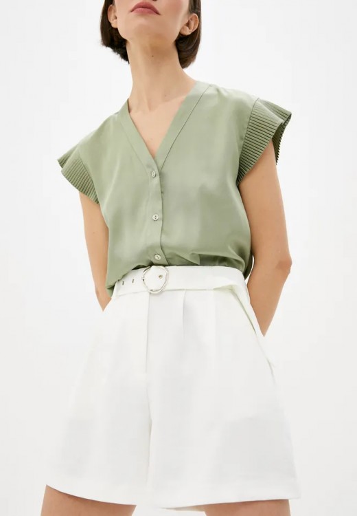 Ідеальним доповненням до цих шортів стане романтичний топ з рукавами-ліхтариками і босоніжки з тонкими перемичками.