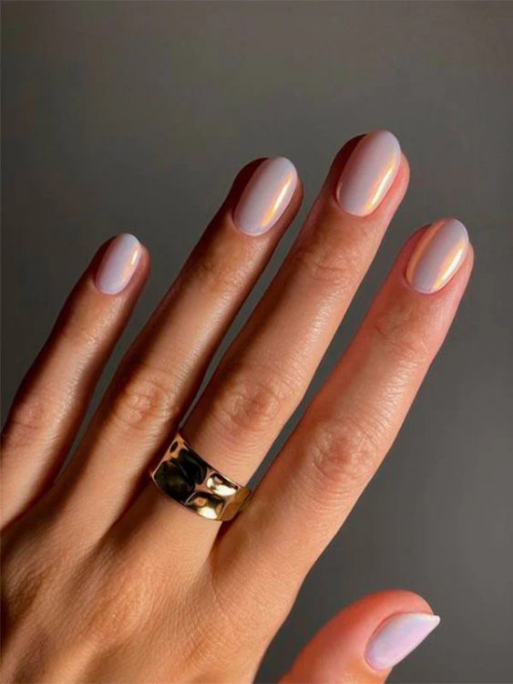 А ось з минулого року з нами залишається тренд, запущений Гейлі Бібер – глазуровані нігті, які виконуються за допомогою втирок. Якщо ви не встигли спробувати такий манікюр торік, сміливо використовуйте їх в цьому сезоні.