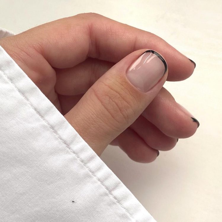 Французький манікюр по-новому — у тренді не просто класичний білий французький манікюр, майстри нейл індустрії пропонують нам замінити базовий світлий відтінок на щось яскравіше і соковитіше, обов’язково зверніть свою пильну увагу на французький манікюр з чорними елементами. Особливо виграшно французький манікюр у чорному кольорі виглядає на коротких квадратних або мигдалеподібних формах нігтях.