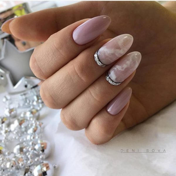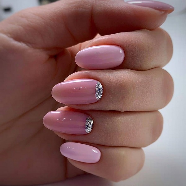 Але відмовлятися від блискучого нейл-арту, звичайно, не варто. Його ви можете залишити для особливих святкових випадків, виконавши, наприклад, витончений вечірній манікюр з глітерними лунками, смужками, геометрією, оформивши нігтики красиво викладеними камінцями у вигляді пірамідки, трикутника біля основи і т.д.