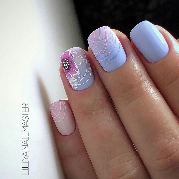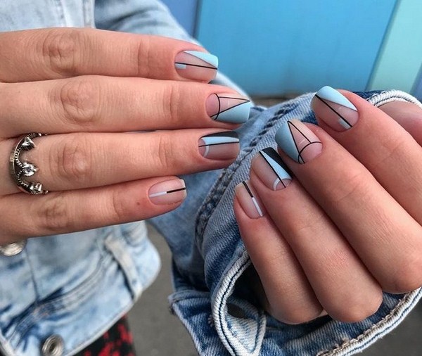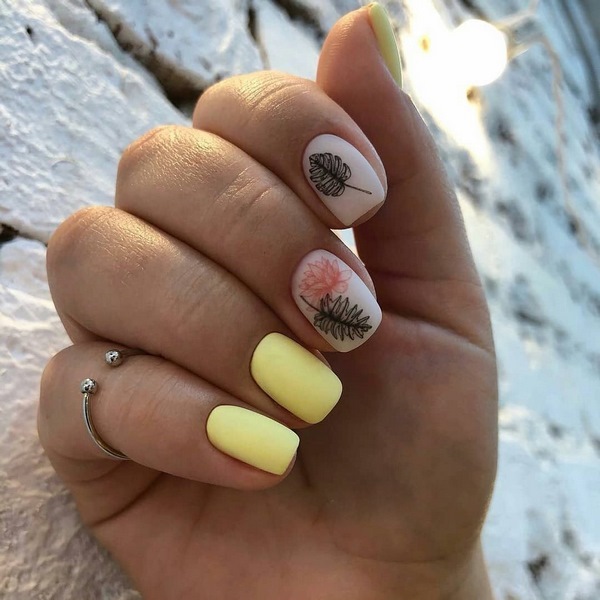 Цікаво виглядає літній манікюр, що відрізняється характерним використанням мінімалістичних візерунків та малюнків, лаконічної геометрії, різнокольорового поєднання матовості та глянцю, монохромного флористичного дизайну, однотонних нігтів у тандемі. оформлений у вигляді френча, місячного, омбре та ін.