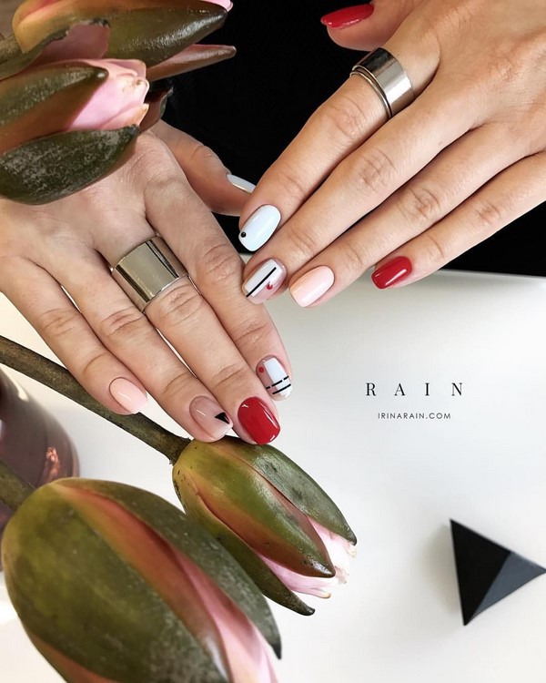 Хоча найідеальнішим варіантом для офісу є манікюр в однотонному виконанні, насправді майстри приготували багато інших стильних прикладів цього тематичного дизайну.
