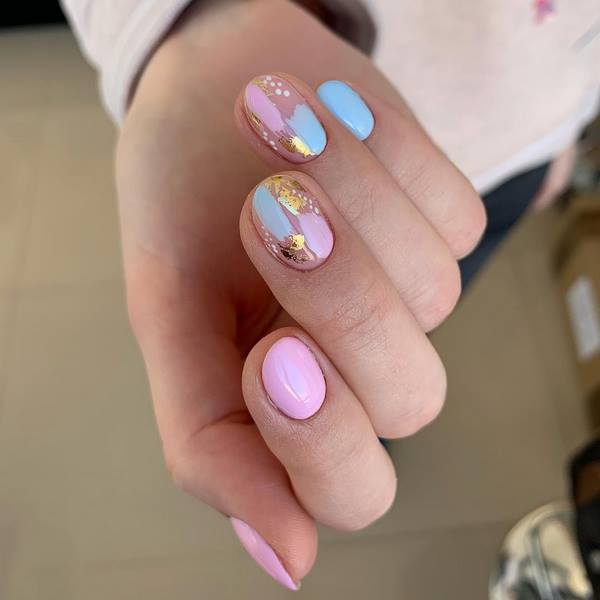 - нюдові та пастельні покриття, що гармонійно виглядають у повсякденному дизайні в різнокольорових поєднаннях, омбре стилістиці, абстракції.
