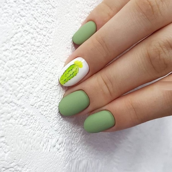 - матовий дизайн у приємних сезонних відтінках з акцентним нігтиком та кумедним малюнком;