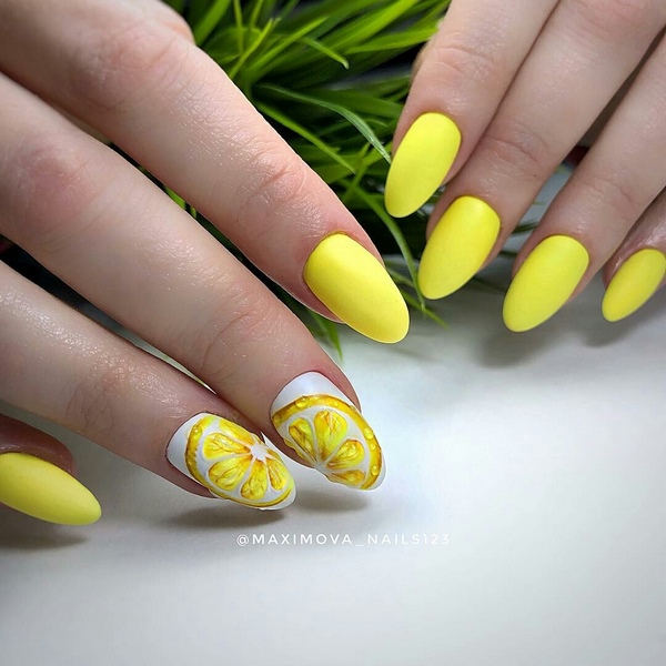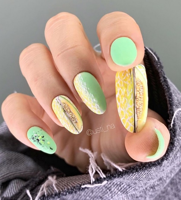 - неформальний та освіжаючий манікюр зі смачним фруктовим дизайном;