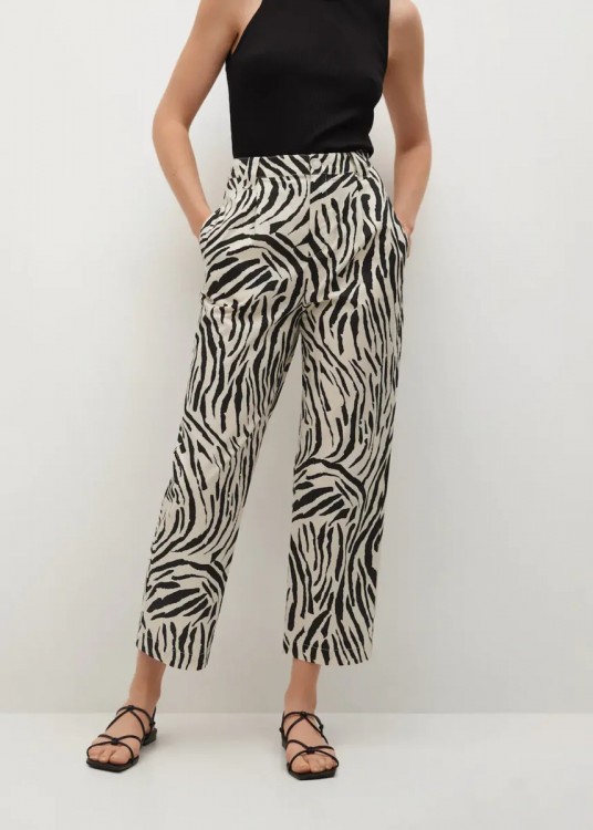 І варіант не для всіх – штани з хижим принтом, хоча він тут досить спокійний, боятися його точно не потрібно. Поєднуємо таку модель з простим однотонним верхом, і вуяля, образ готовий.