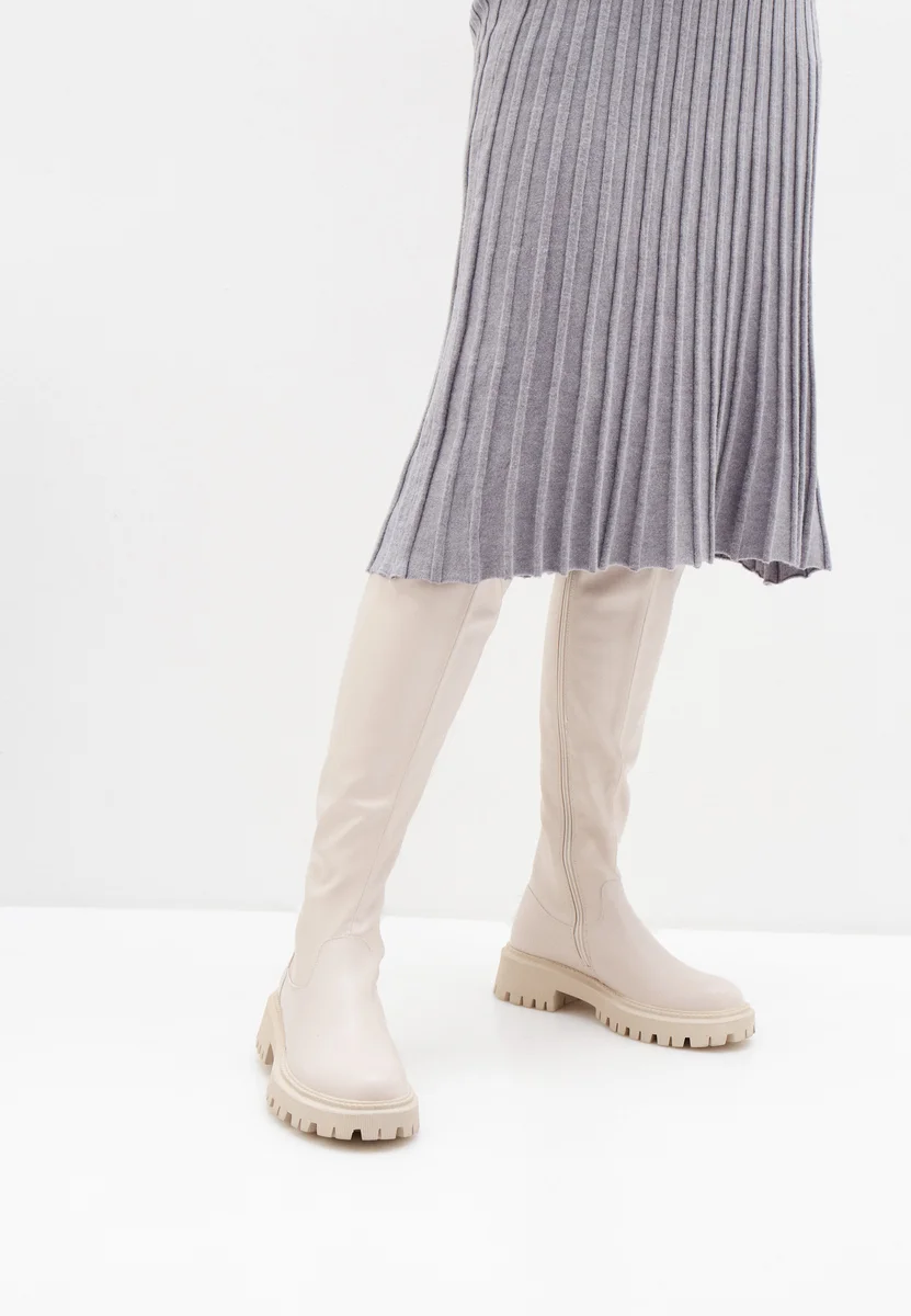 Ботфорти в цьому сезоні стали «грубшими». Моделі на тракторній підошві або шнурівці зараз найбільш актуальні. Якщо ми подивимося на чоботи, варто зазначити, що модний варіант не обтягує ногу від відміну від ботфортів. Чоботи добре тримають форму. Каблук може бути будь-яким: від низького до стійкого високого.