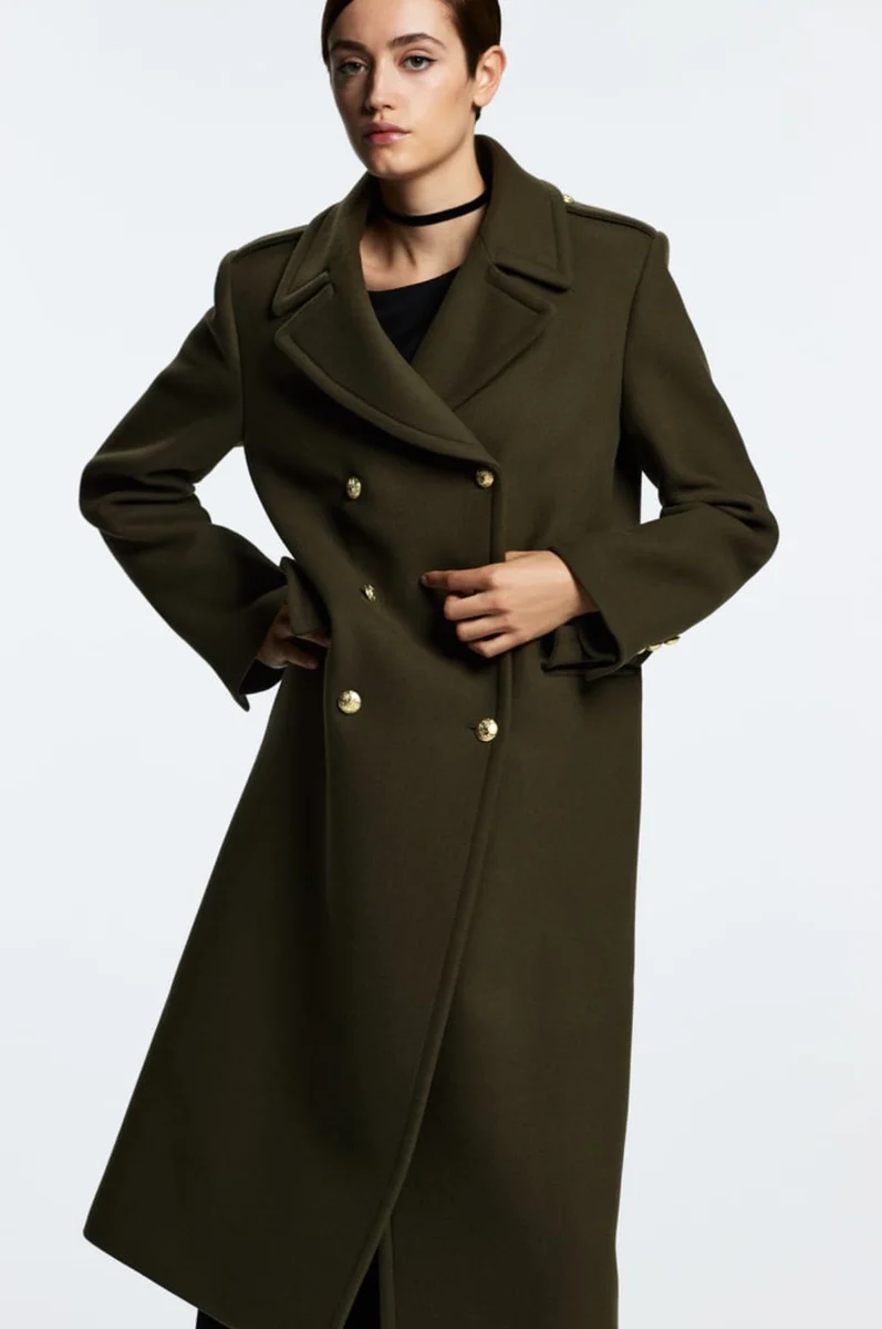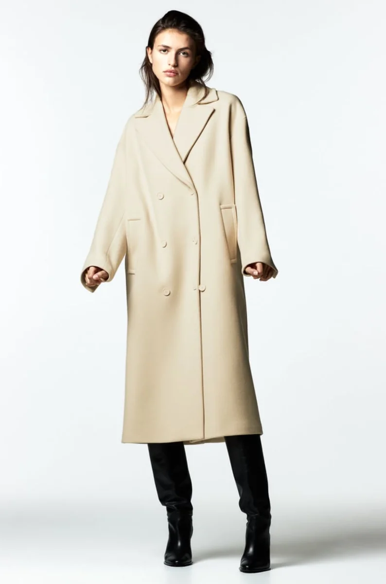 Пальто-халати, які так довго були в моді, залишаються актуальними, проте в добірці на цю осінь ви їх не побачите. Так як в моді вони давно, ми пропонуємо вашій увазі інші модні варіанти. Наприклад, прямі, двобортні пальто довжини міді з контрастними гудзиками.