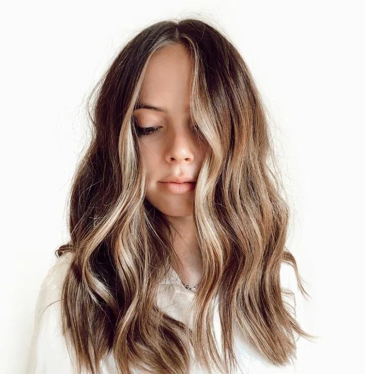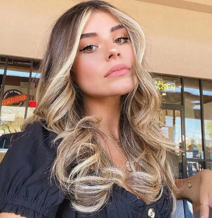 Перед вами наочний приклад того, як стильно і гармонійно контрастні відблиски карамельного кольору виглядають на темному волоссі. Ця складна техніка фарбування спрямована як на перетворення волосся, так і в цілому на омолодження зовнішності. Світле волосся – це безпрограшний варіант, особливо, якщо ви хочете виглядати візуально молодше свого віку.