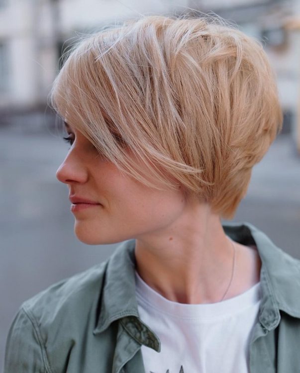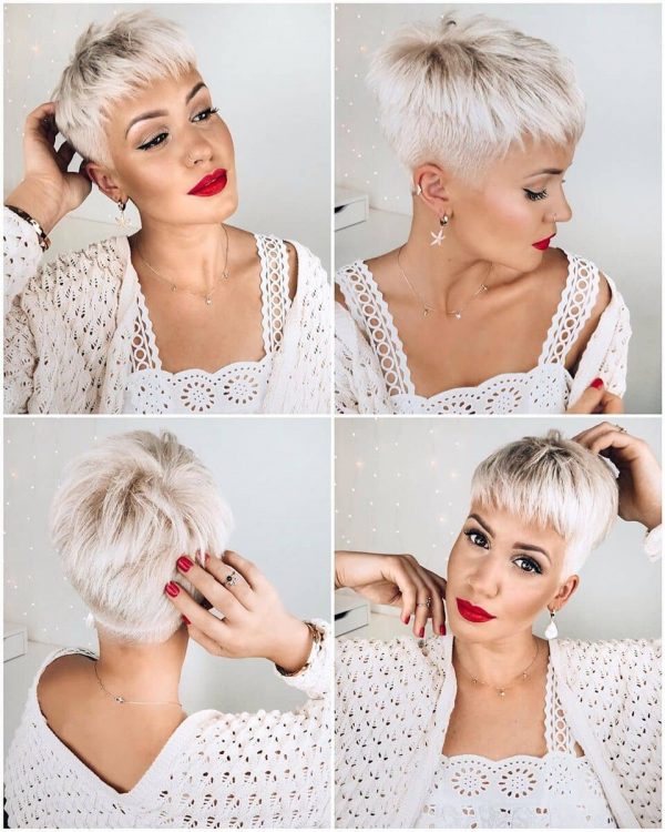 А цей варіант піксі виглядає по-хуліганськи стильно і неймовірно жіночно, особливо з правильним макіяжем та повним образом. Яскраве (не обов’язково кольорове) фарбування робить стрижку ще свіжішою та цікавішою.