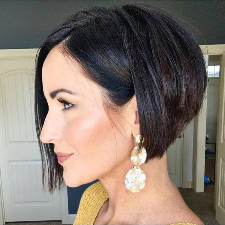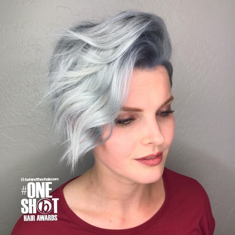 Як щодо такого незвичайного асиметричного боба? Коротка потилиця і довгий чубчик виглядають контрастно, але стрижка виглядає гармонійно і стильно. Підкресліть її текстуру за допомогою контурного або акцентного фарбування з тонкими пасмами, що світяться.