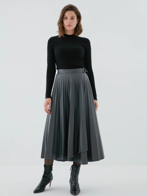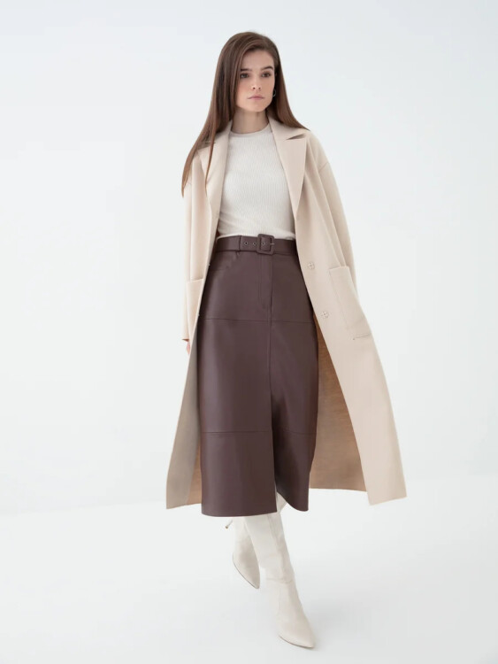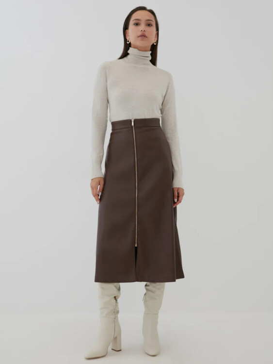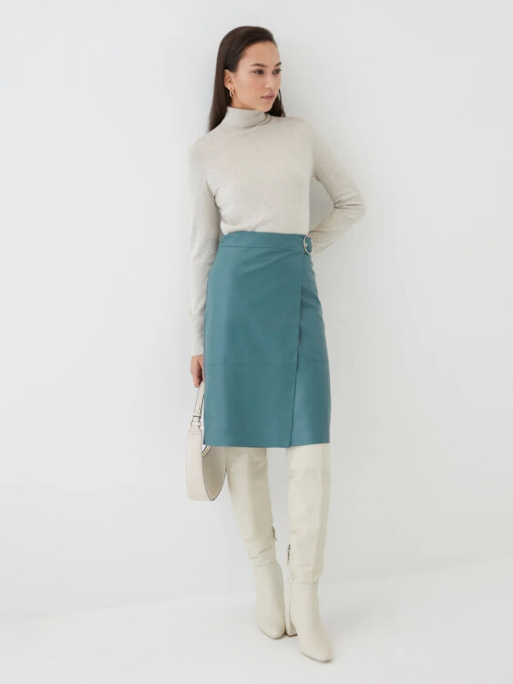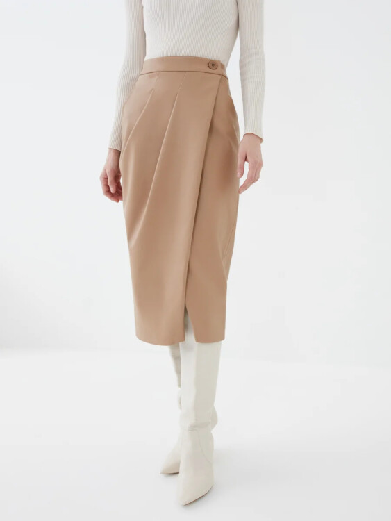 Стильні та практичні спідниці з екошкіри гарно виглядають у всіх кольорах: дерева, морської хвилі або нюду.