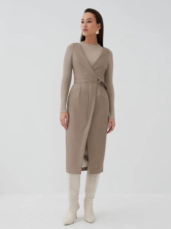 Жіночні деталі у вигляді запаху і діагональних виточок допомагають речам ідеально сидіти на різних фігурах. до речі, крім спідниць і штанів дизайнери пропонують носити і сарафани з екошкіри.