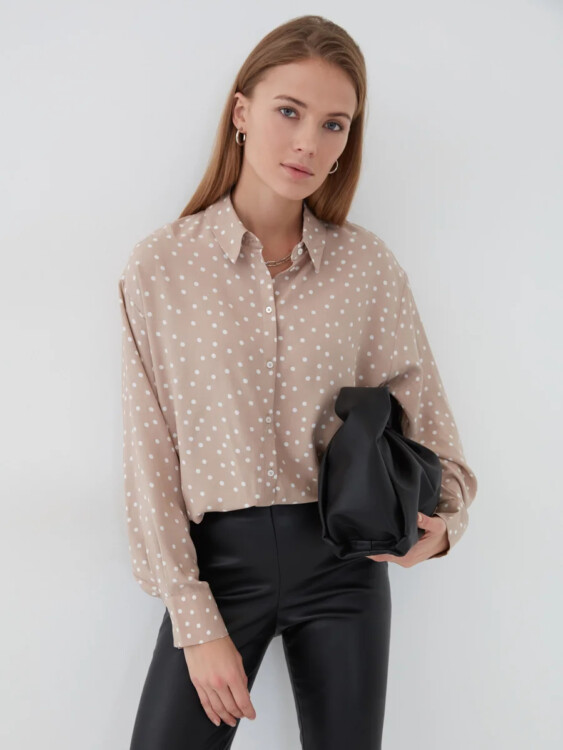 Ближче до лиця модниці одягають світлі блузки, а для низу обирають штани або спідниці зі штучної шкіри. Як же гарно виглядає горошок на жіночих блузках!