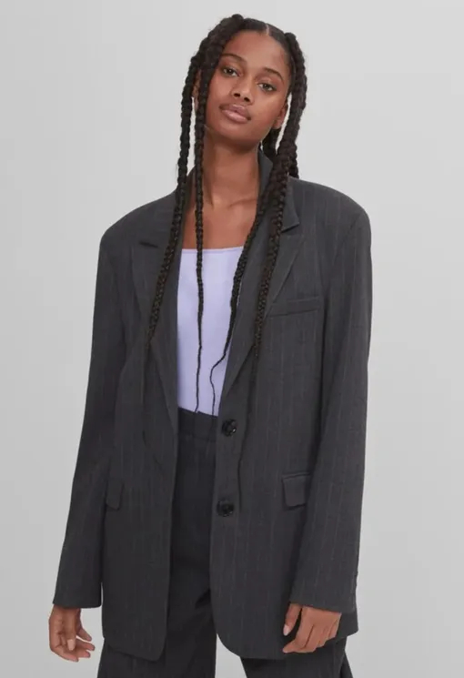 Гардероб сучасної жінки складно уявити без хоча б одного піджака. Пропонуємо модель темно-сірого кольору, яка завдяки лаконічному дизайну і простому крою легко впишеться в різні образи.