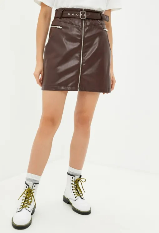 Шкіряна коричнева спідниця – універсальна базова річ. Ви можете носити її з водолазкою і подовженим блейзером або поєднувати з атласним топом і ботфортами, якщо збираєтесь на вечірку.