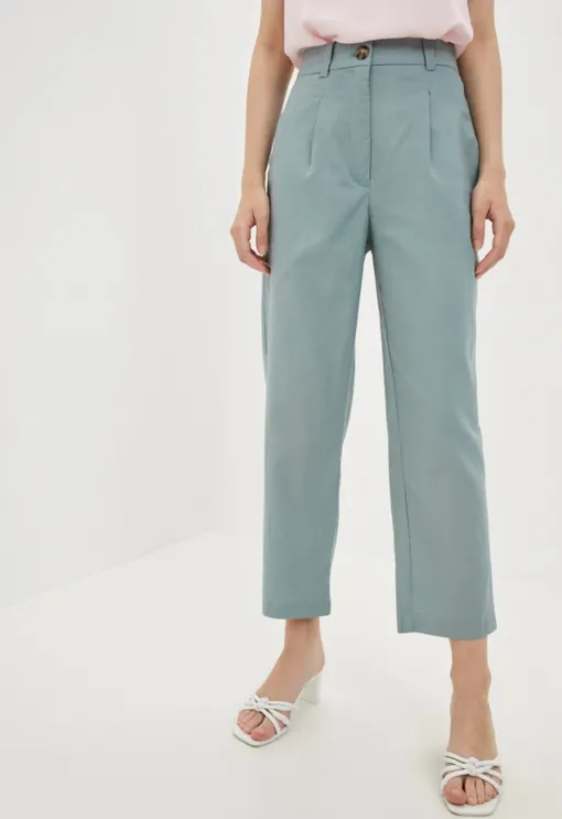 Для ділових образів пропонуємо штани приглушеного ментолового кольору. Підберіть до них жакет в тон, лаконічні шкіряні лофери і строгу білу сорочку.