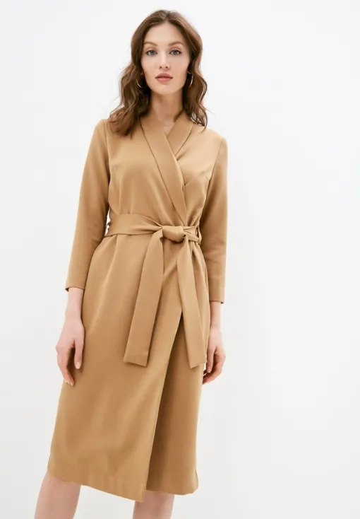 Ідеальна сукня на кожен день – модель з запахом пісочного кольору. Його можна по-різному стилізувати за допомогою взуття та аксесуарів в залежності від того, куди ви збираєтесь піти.