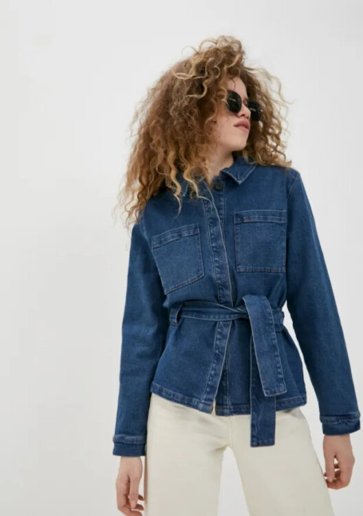Синій денім – хіт сезону. Вибирайте джинсову куртку на поясі і носіть її зі світлими джинсами і шкіряними ботильйонами, щоб створити нову модну варіацію «канадського смокінга».