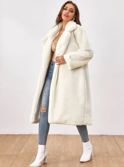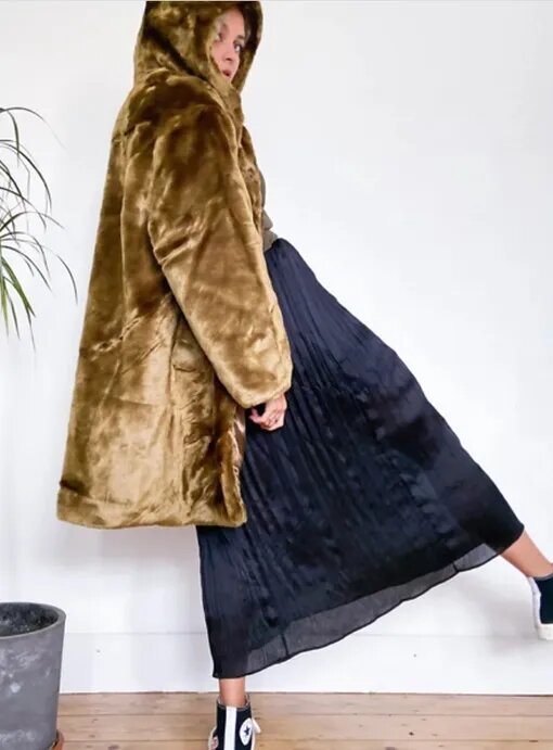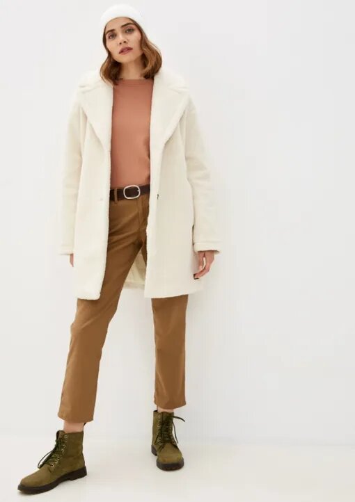 Затишне оверсайз-пальто зі штучного хутра не тільки зігріває, а й дозволяє складати модні багатошарові образи. Накиньте його поверх сорочки і трикотажного жилета або носіть з довгою трикотажною сукнею і жакетом.