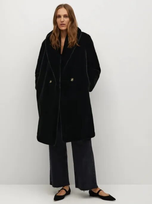 Якщо ви віддаєте перевагу мінімалізму і простому крою, зверніть увагу на це чорне хутряне пальто з англійським коміром. Такий нейтральний верхній одяг гармонійно поєднується і зі спортивними комплектами, і зі строгими костюмами, і з вишуканими сукнями і жіночними спідницями. Його легко можна обіграти за допомогою аксесуарів. До пальто відмінно підійдуть, наприклад, шкіряна панама, довгий шарф з бахромою, картуз, капелюх, шапка-балаклава.