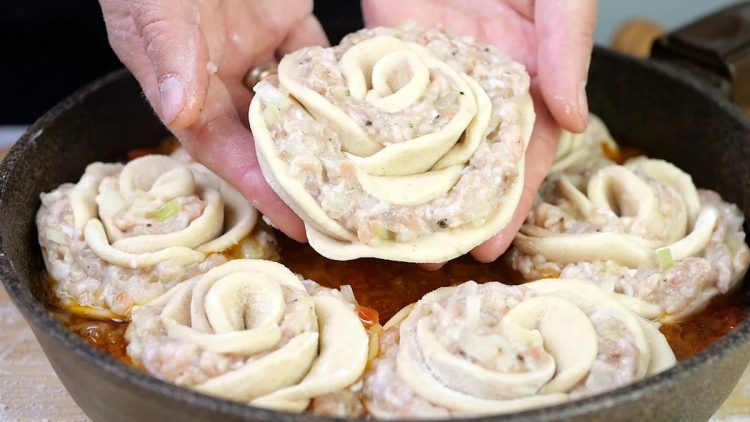 Трояндочки з тіста та фаршу на сковороді – оригінальна та смачна страва