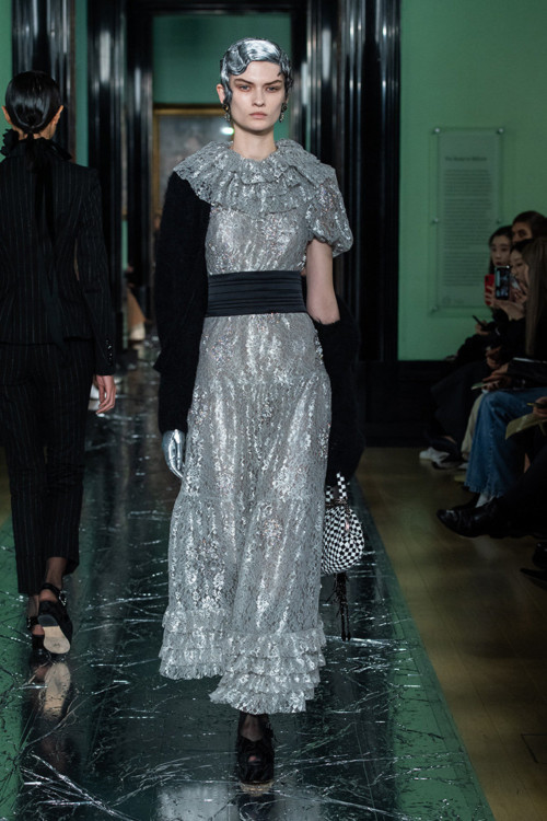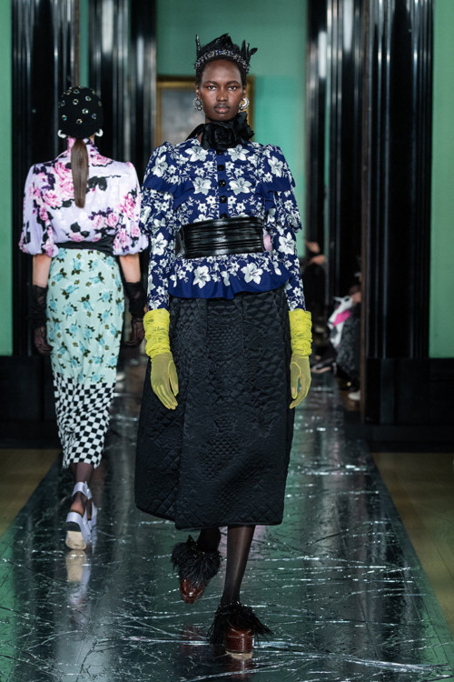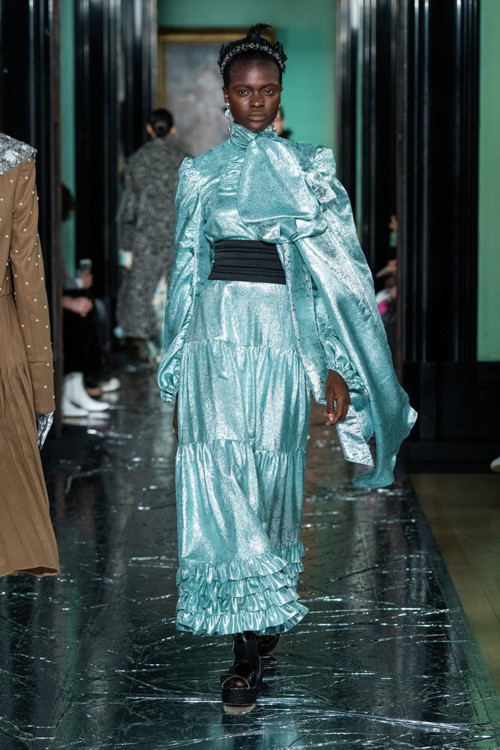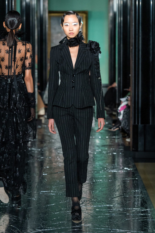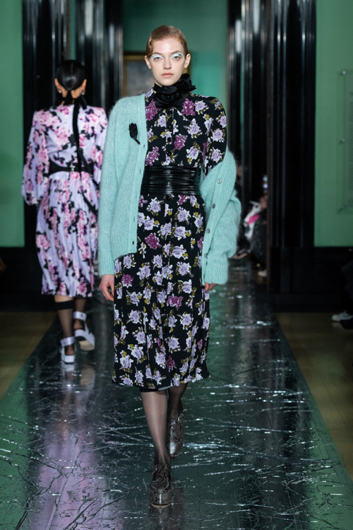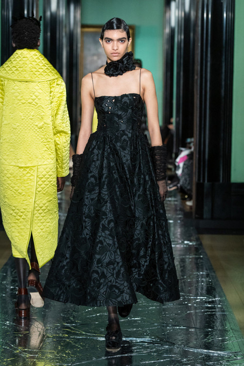Ердем Мораліоглу – той ще веселун. Його, як і багатьох британських дизайнерів, тягне до речей по-вікторіанськи похмурих. Тому і взимку, і влітку на його речах цвітуть темні троянди, задумливо колишеться чорне пір’я, а сукні закриті і не по-сьогоднішньому скромні – виключно в плані довжини і вирізів, а не багатства декору. Тому що на обробку дизайнер не скупиться ніколи. Ось і цього разу до квіткових принтів додалися заодно візерунки, вишиті перлами, штучні троянди (зрозуміло, чорні), аплікації, різьблені жаккарди, розсипи паєток і не тільки. Хоч настрій у дизайнера незмінно похмурий, виглядає все надзвичайно красиво – і дуже, дуже ошатно.