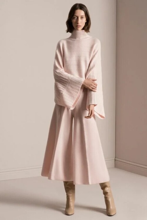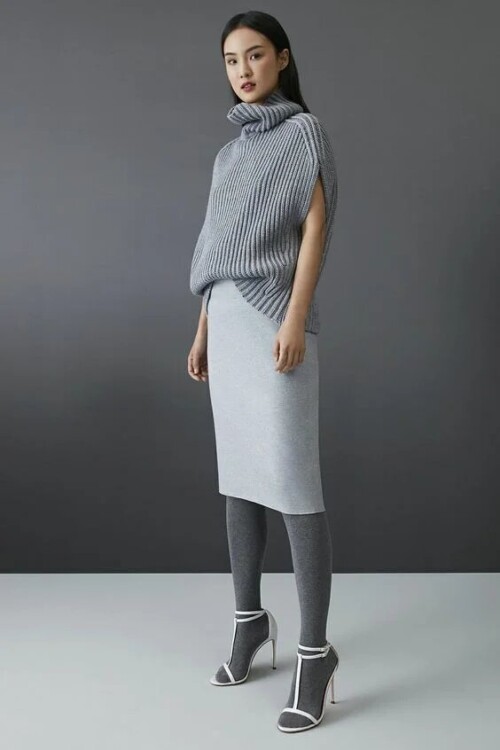 Тонкий трикотаж підкреслює недоліки фігури. Тому вибирайте щільний трикотаж. Головні відтінки сезону – бордо, винний, бежевий, карамель, Кемел.