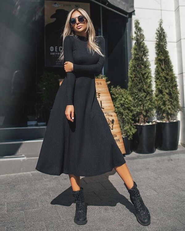 Цієї осені варто звернути увагу на трикотажні сукні-локшину. Однак, якщо раніше в моді були обтягуючі силуети, то зараз все змінилося. Так, верх як і раніше може нагадувати гольф, але низ повинен бути вільним.