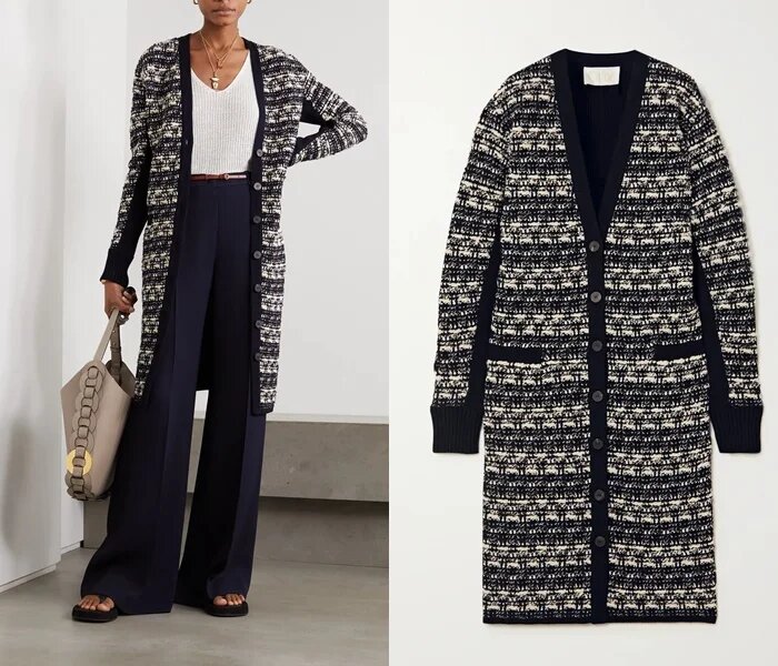 Для тих, хто не проти відчутних ретро-мотивів в своєму повсякденному вбранні, створений цей твідовий кардиган Chloé. У ньому все просякнуто естетикою ретро звідкись із сімдесятих і вісімдесятих, і він відмінно підійде для створення простого мінімалістичного образу з гладкими чистими лініями.