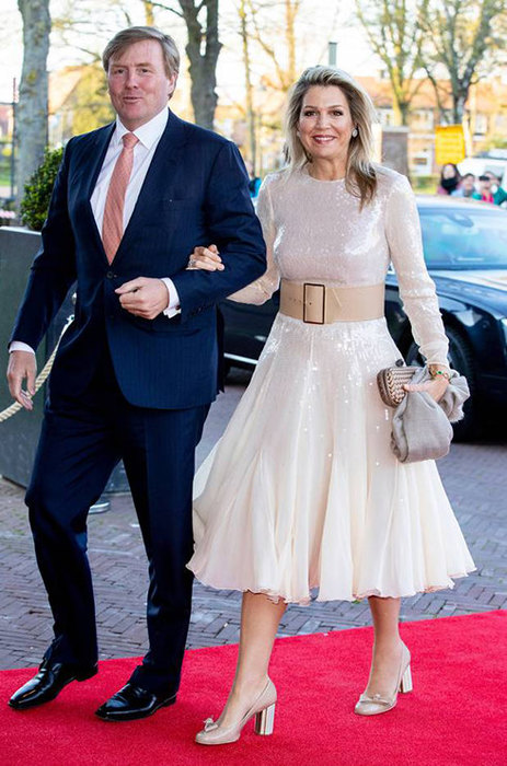 Королева Максима наділу дуже красиву і ніжну сукню. Але широкий пояс зі шкіри для цього наряду виявився занадто грубим і «перевантажив» увесь вигляд.
