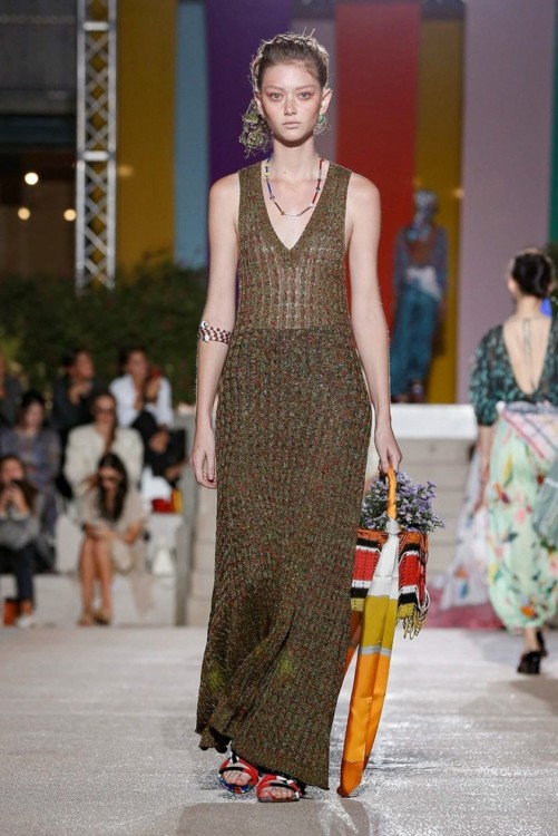 У новому сезоні Анжела Міссоні надихнулася образами Джейн Біркін і Сержа Генсбура, а тому моделі ходили із в’язаними кошиками в руках, в вільних блузах і кольорових сукнях, а юнаки були одягнені в хуліганські костюми і прозорі сорочки, демонструючи ідеальний літній гардероб.