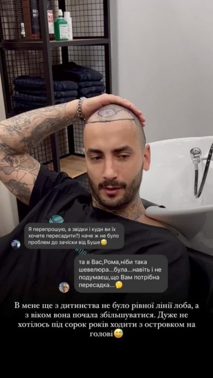 Чоловік поскаржився на сильний головний біль та показав, як наразі виглядає. А ще Роман Свечкоренко пояснив, навіщо зробив операцію з пересадки волосся. “В мене ще з дитинства не було рівної лінії лоба, а з віком вона почала збільшуватися. Дуже не хотілось під 40 років ходити з острівцем на голові”, – відверто зізнався блогер.