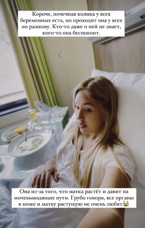 Пізніше Даша Квіткова вийшла на з’язок зі своїми підписниками й повідомила, що залишається на деякий час в лікарні. За словами вагітної, в неї ниркова коліка. Майбутня мама заявила, що їй вже краще. Також Даша Квіткова показала фанам свою палату й розказала, чим її годують.