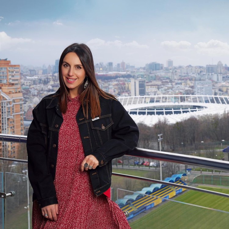 Співачка прогулялася по території одного з нових житлових комплексів у Києві на Печерську. По фото видно, що співачка прогулялася по сучасному стадіону. А також піднялася на висотку. За її спиною відкриває шикарний вид на столицю. Зокрема, видно стадіон “Олімпійський” з його впізнаваною архітектурою.