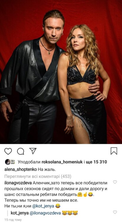 Зокрема, відповідні нововведення стосовно дискваліфікації неабияк обурили не лише шанувальників Винника та Шоптенко, але й їхніх зіркових колег, серед яких особливо відзначилась Гвоздьова. У коментарях до допису Олени, Ілона зазначила, що коли переможці минулих сезонів покинули проєкт й повернулися до своїх домівок, в інших учасників проєкту нарешті, нібито, з’явився шанс перемогти в ток-шоу.