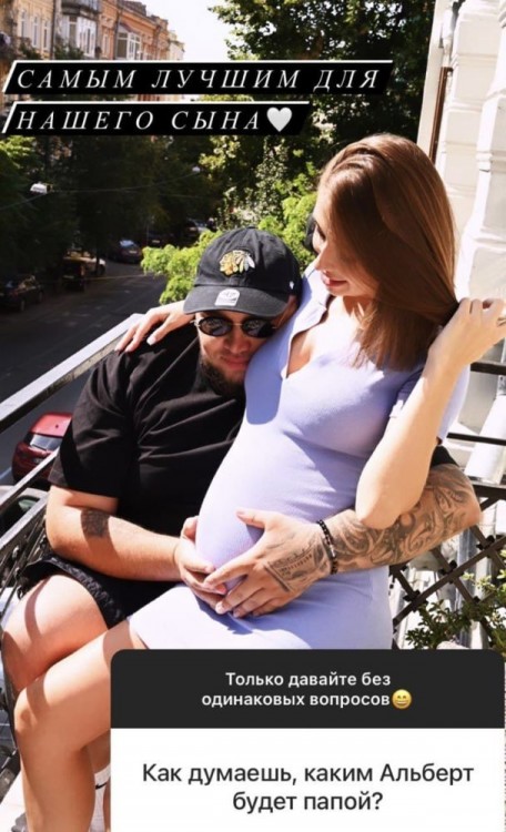 В Instagram-stories дівчина запостила фото, на якому позує з вагітним животиком. За словами Аліни, зовсім скоро вона народить коханому сина. Термін своєї вагітності обраниця артиста не розсекретила. Однак, дівчина натякнула, що до пологів залишились лічені дні.