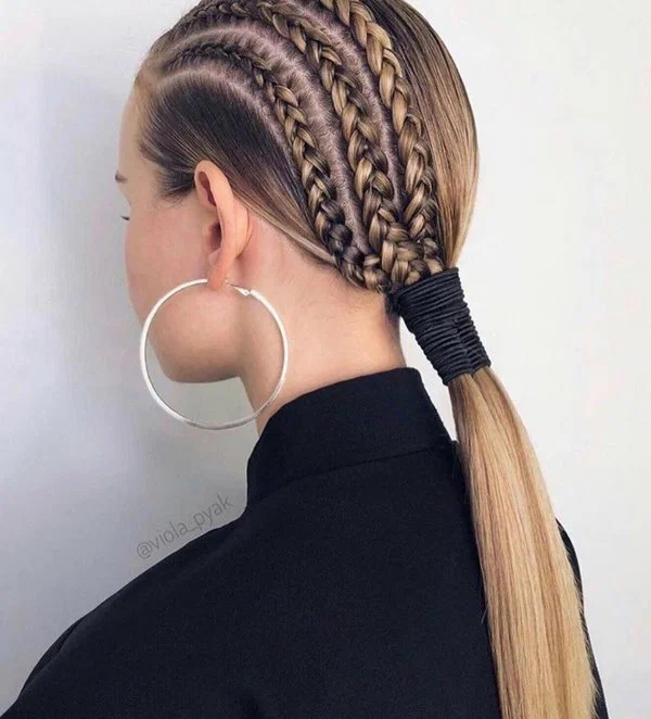 Ось такий бунтарський варіант зачіски вийшов за допомогою гладкого хвоста та красивих тонких кісок.
