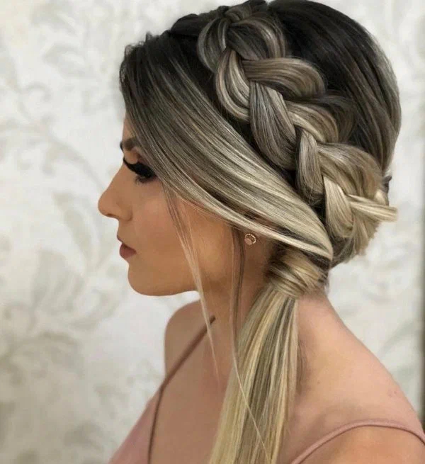 Бічна текстурована коса, що переходить у хвіст — зачіска, яку легко можна повторити в домашніх умовах, маючи під рукою гребінець і гумку.