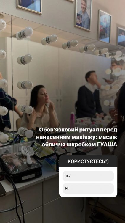 Однак, перед макіяжем телеведуча обов’язково робить масаж обличчя. За її словами, це допомагає усунути набряки. Після масажу на обличчя жінки наносять макіяж. “Після масажу наношу догляд для обличчя: тонік, сироватка, креми та база під тональний крем. Це важливо, аби косметика не псувала шкіру”, – прокоментувала Людмила Барбір.