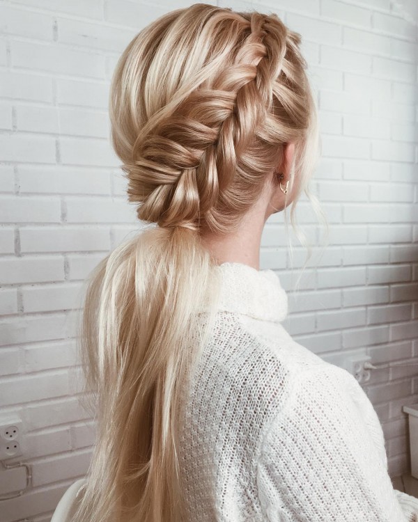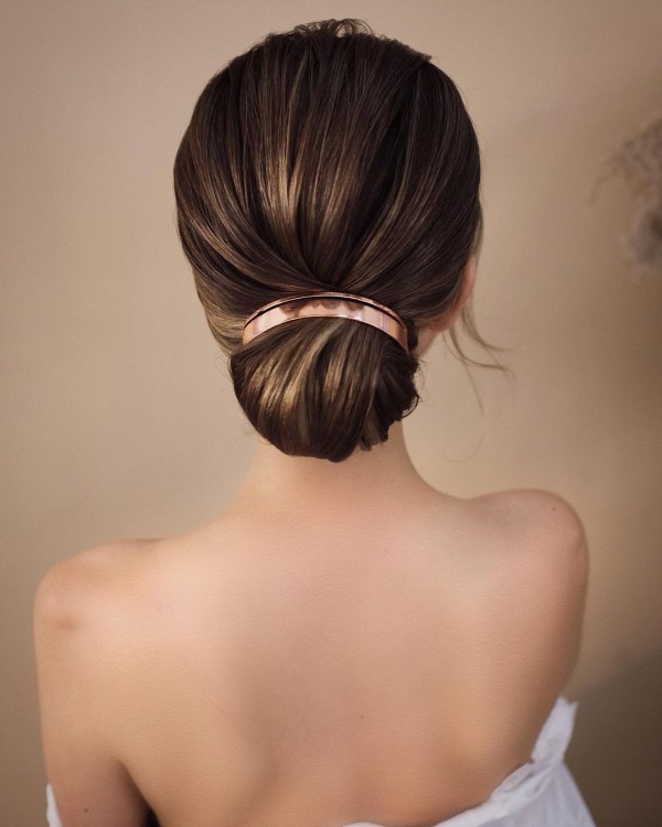 Для ділових бізнес-вумен найкращим рішенням стане проста і водночас солідна зачіска – низький хвіст із боковим проділом.