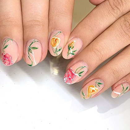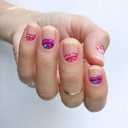 Якщо хочеться чогось ніжного, не фарбуйте нігті повністю. Залиште прозору основу, а сам малюнок нехай буде кольоровим (такий варіант називається negative space). Знадобиться зубочистка або тонка кісточка. Оскільки дизайн досить складний, не турбуйтеся, якщо знадобиться декілька разів повторити принт з картинки.