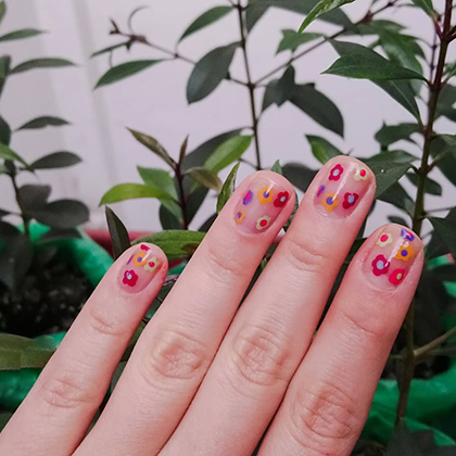 Зараз, як ніколи, хочеться підняти собі настрій, особливо в умовах, коли весну ми через пандемію коронавірусу спостерігаємо тільки з відкритих вікон. Саме час зробити яскравий, сонячний і гарний манікюр. Так що дістаємо лаки, тонкий пензлик (підійде звичайнісінький з художнього магазину) і починаємо творити.
