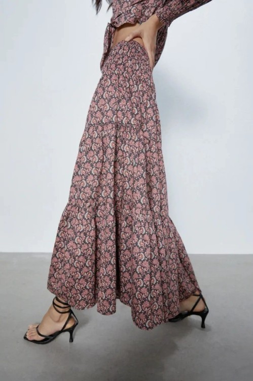 Широка та невагома квітчаста довга спідниця – річ, що створює по-справжньому літній настрій! Моделі можуть бути абсолютно різними: проста призібрана спідниця, спідниця в складку, сонце або напівсонце. Наймоднішим варіантом вважається багатоярусна довга спідниця.