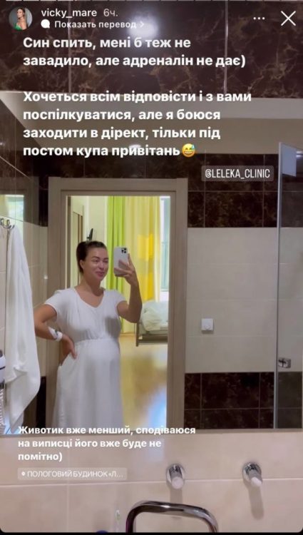 Також Вікторія Маремуха показала свій вигляд після пологів. Вона продемонструвала невеличкий животик та повідомила, що з нетерпінням чекає на виписку. А ще акторка зізналась, що малюк не поспішав з’являтися на світ.